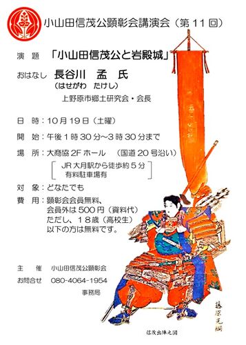 4月21日(日曜)14:30~ 山梨県大月市立図書館2F映像ホール 定員99名 演題:「松姫様と信茂公」 主催:小山田信茂公顕彰会 費用:会員外の方は資料代500円お願いします。 お待ちしております。